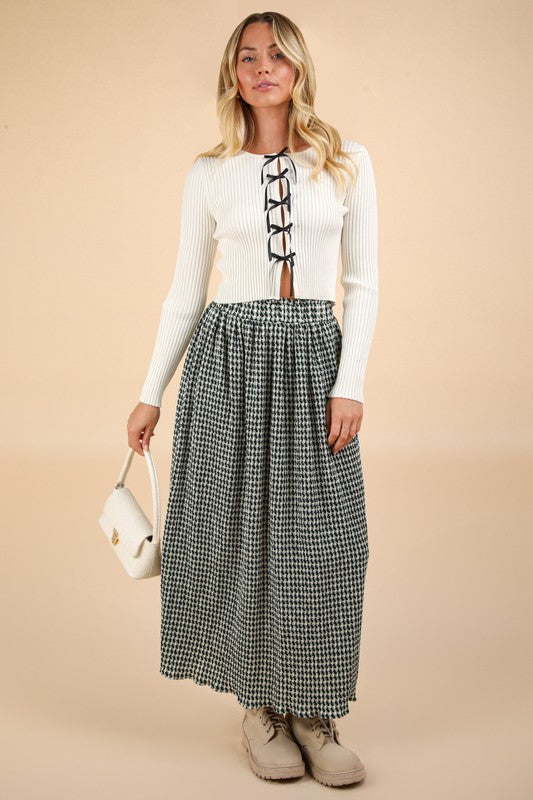 ¡La Midi Skirt es la pieza clave que necesitas en tu armario! Confeccionada con un diseño elegante y cómodo, esta falda con cintura elástica se adapta perfectamente a tu silueta, brindándote libertad de movimiento sin sacrificar estilo. Su combinación de colores crema y verde la convierte en una prenda única, atemporal y versátil que se adapta a cualquier ocasión. Ya sea para un look casual o una salida más formal, esta falda será tu compañera perfecta, elevando cualquier conjunto con su toque de sofisticación.