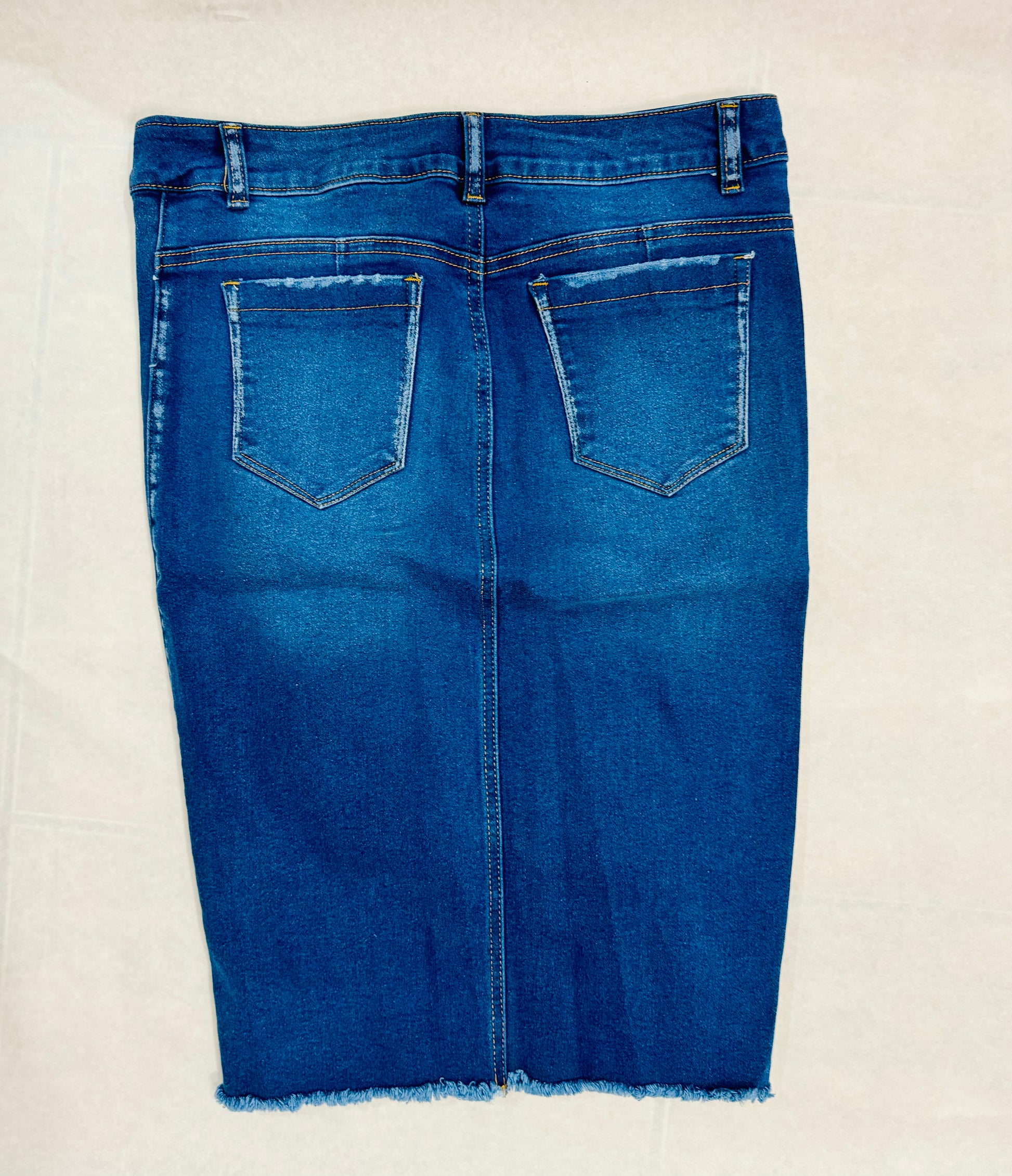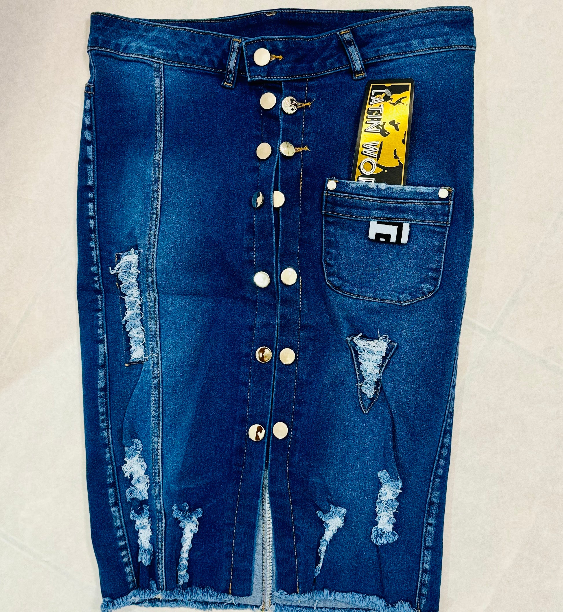 Eleva tu estilo con nuestra Falda Mahon Azul Dark. Confeccionada con detalles rasgados y botones plateados, esta exclusiva pieza elevará tu armario a un nuevo nivel de sofisticación. Perfecta para cualquier ocasión, su tela stretch se adapta a tu cuerpo para un confort inigualable. ¡No esperes más para sentirte y lucir increíble con ella!