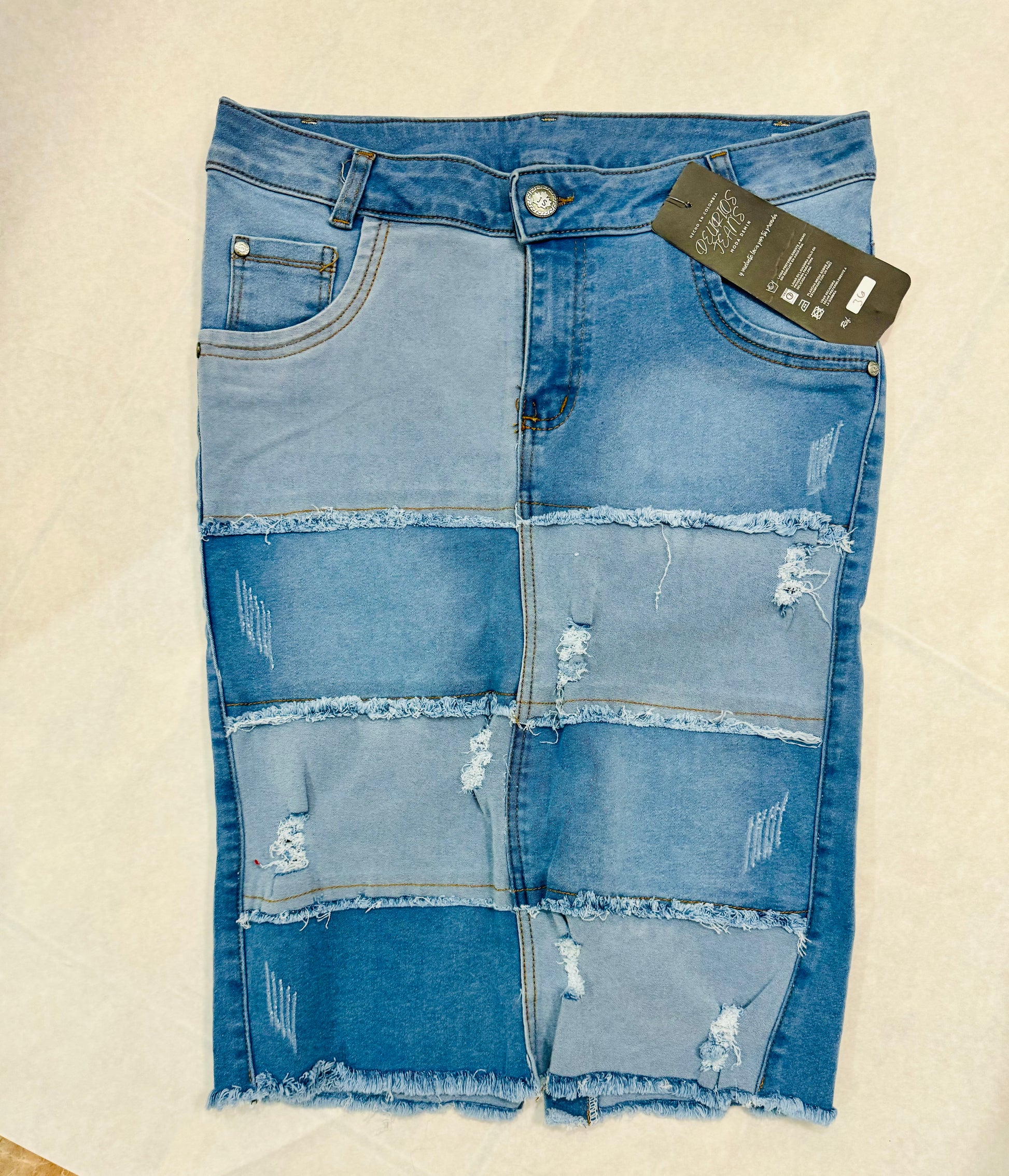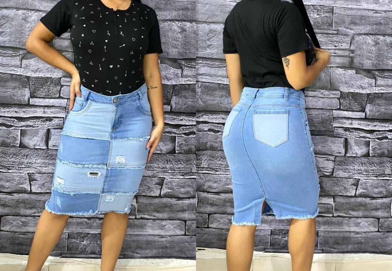 Transforma tu estilo con la falda Mahon Multi Color de tela spandex mahón. Creada para adaptarse a cualquier ocasión, esta falda denim te permite crear una declaración de moda en azul. ¡Hazla tuya hoy mismo!
