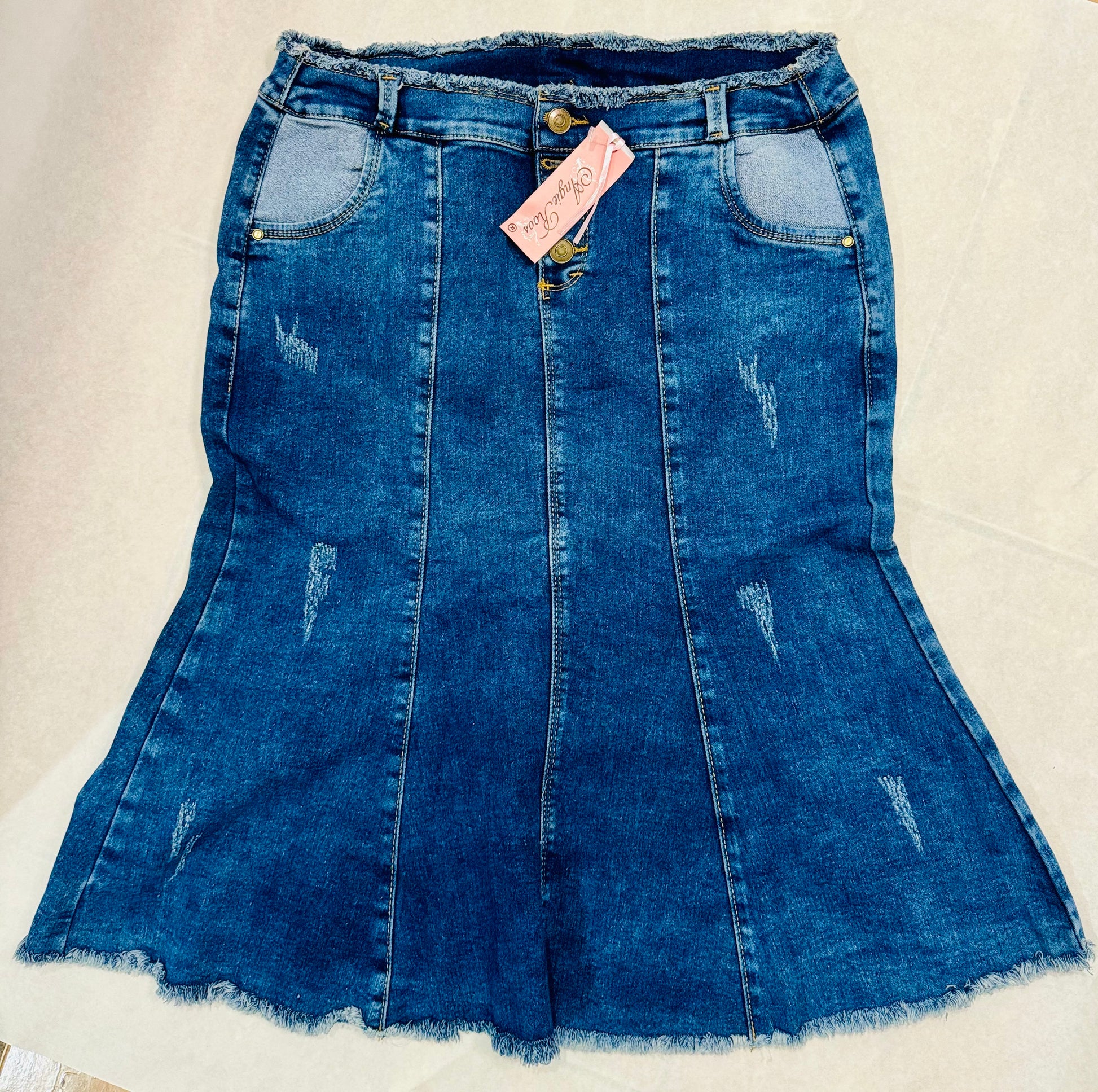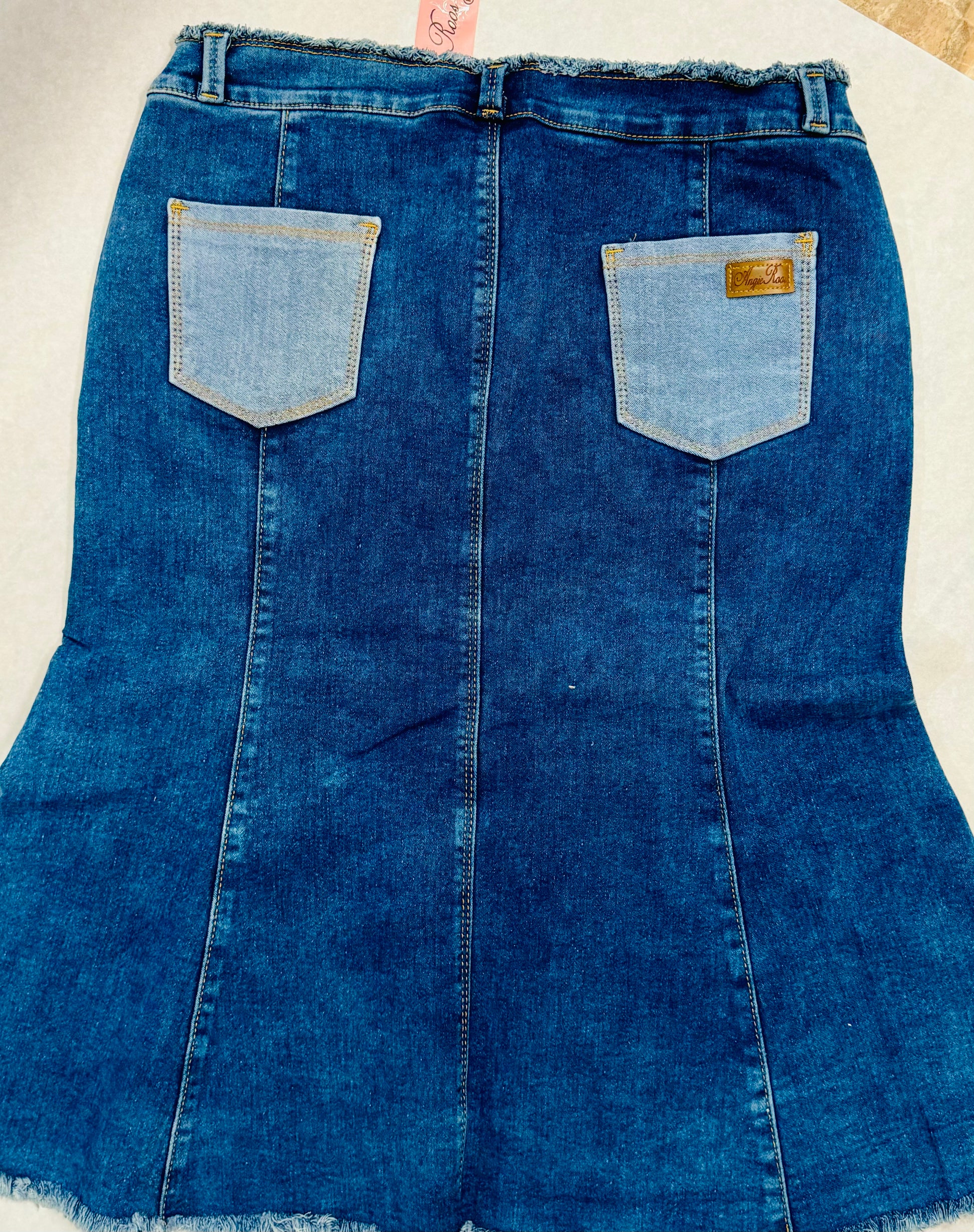 Transforma tu estilo con la falda Mahon Navy de tela spandex mahó. Creada para adaptarse a cualquier ocasión, esta falda denim te permite crear una declaración de moda en azul. ¡Hazla tuya hoy mismo!