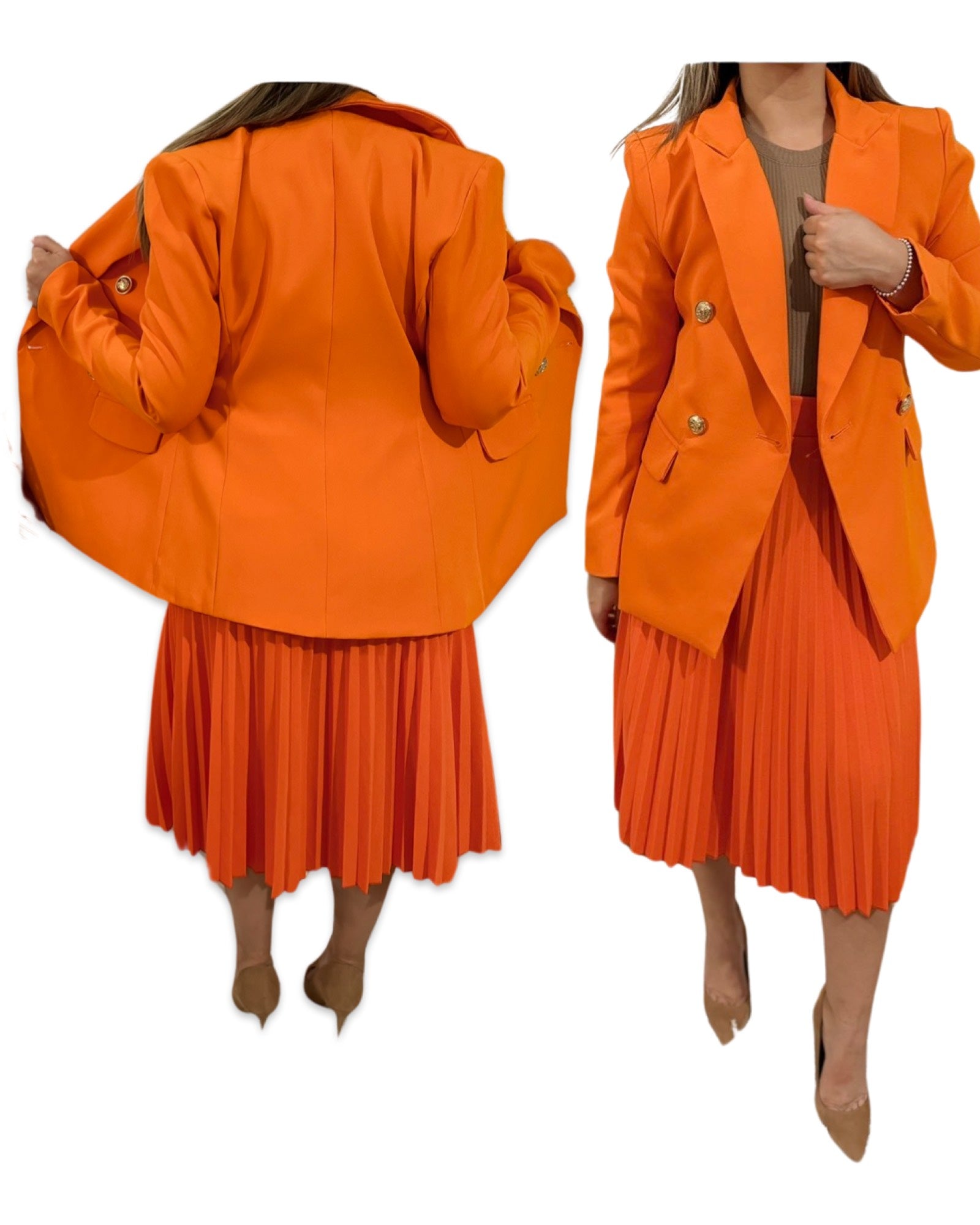 Disfruta de la máxima comodidad y estilo con nuestra falda plisada Mandy. Su vibrante tono naranja y cintura elástica ofrecen un ajuste perfecto, asegurando que te sientas cómoda y confiada en todo momento. Esta falda es la opción ideal para cualquier ocasión, combinando elegancia y confort en una sola prenda.