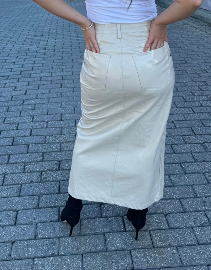 Haz una declaración de estilo con nuestra falda color sand, confeccionada en un material de piel simulada que evoca el lujo del cuero. Con un diseño sofisticado y moderno, esta falda cuenta con una abertura frontal con zipper que le da un toque audaz y contemporáneo, mientras que sus bolsillos delanteros y traseros no solo aportan funcionalidad, sino también un giro urbano y chic.