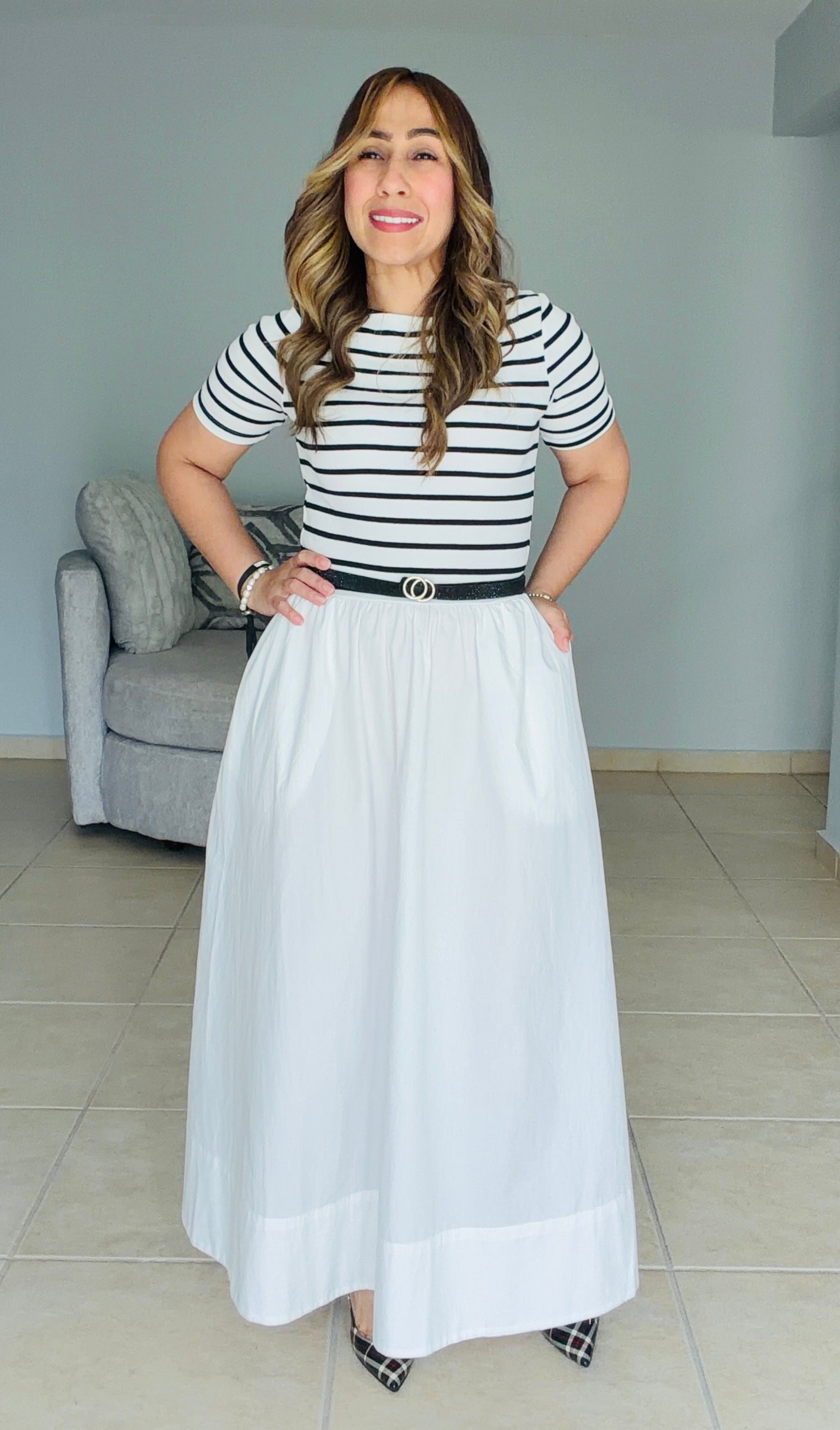 El escote tipo barco resalta tu porte con delicadeza, y sus bolsillos ocultos son ese toque práctico que amamos sin perder el estilo.
