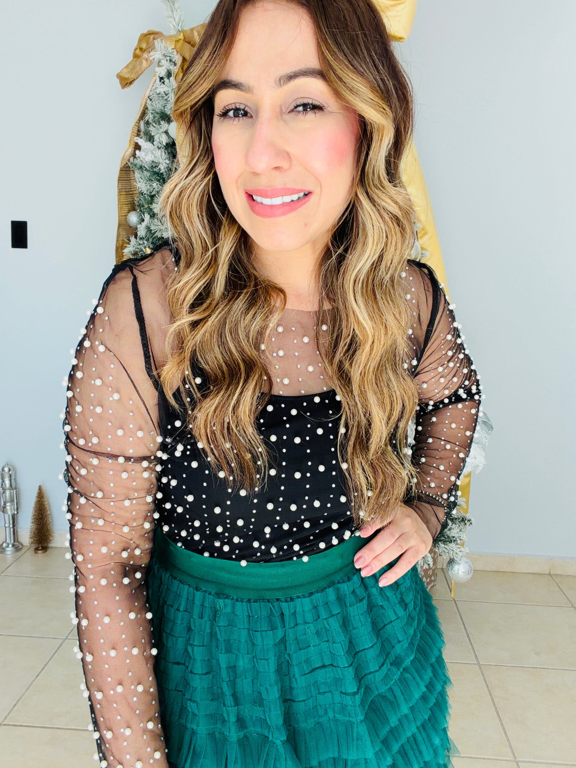 Combínalo con piezas de líneas limpias para permitir que el encaje y el brillo sean los protagonistas. Ideal para eventos especiales, cenas elegantes o momentos donde deseas vestir con intención y presencia.