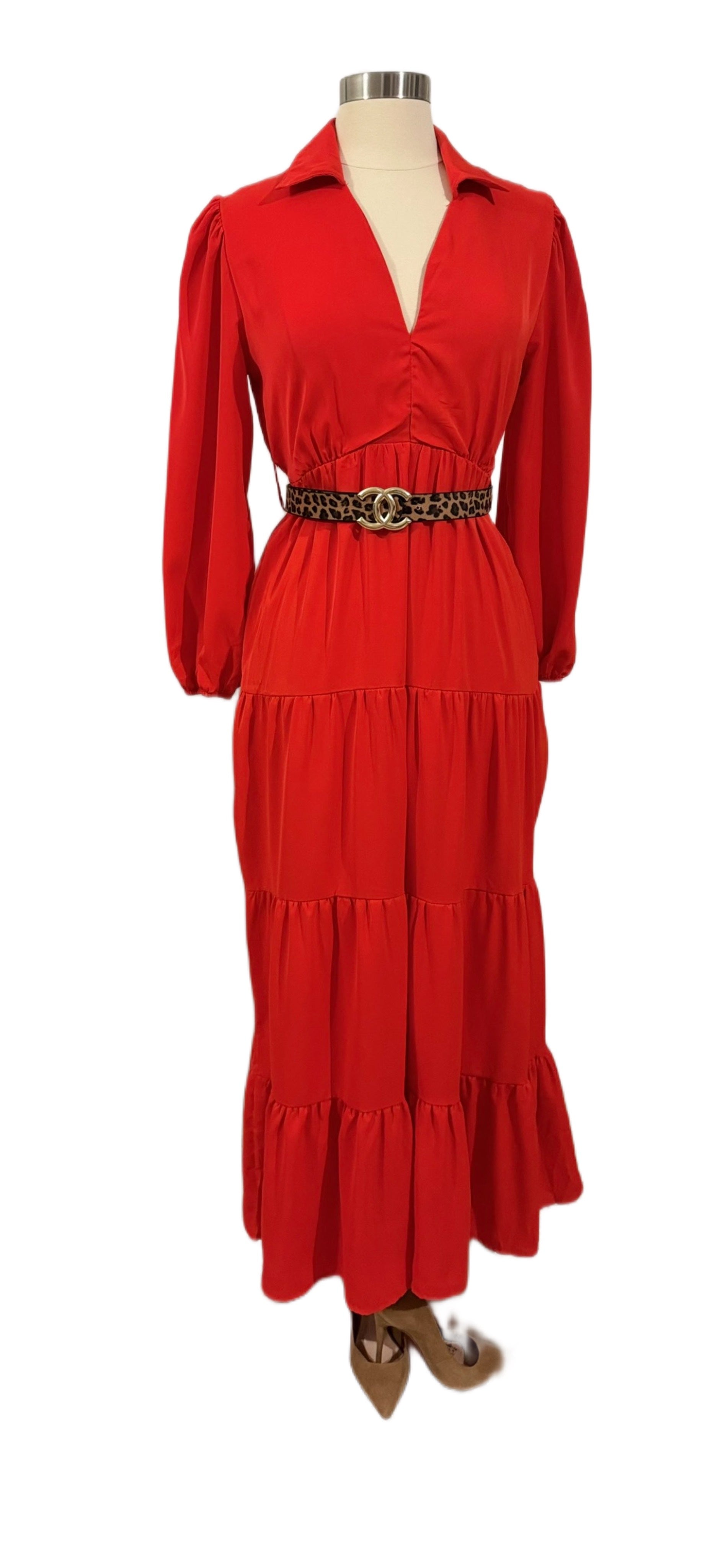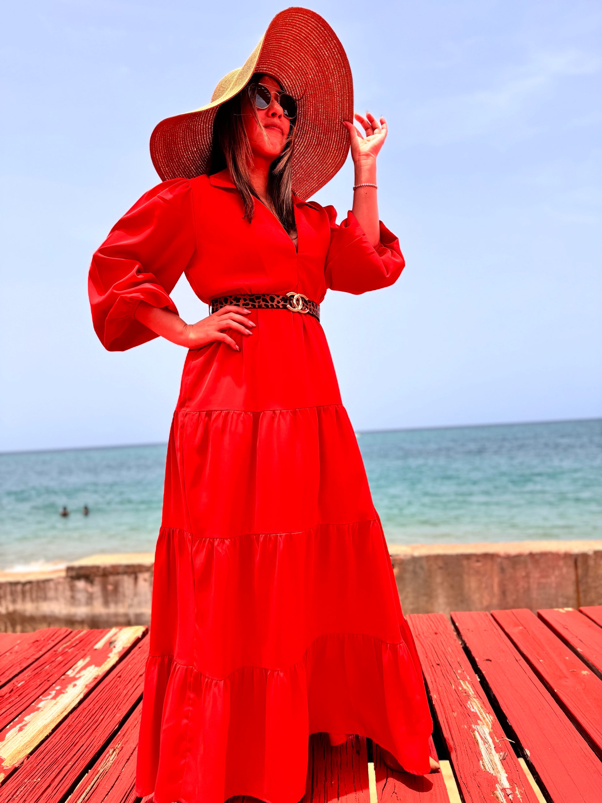 Haz una declaración de poder y elegancia con nuestro traje Sun en vibrante color rojo. Este traje, que incluye un cinturón de animal print, no solo aporta una dosis de frescura y comodidad, sino que también transmite una energía audaz y sofisticada. Rojo, el color de la pasión y el poder, te permitirá brillar en cualquier evento especial, mostrando tu fuerza, amor y confianza con cada movimiento.